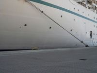This stunning stock photo features a large white cruise ship parked in the dock area of Bremerhafen Harbor in Germany. The ship is majestically positioned with ropes hanging from its side. The scenic view captures the beautiful water, asphalt, and wooden flooring around the pier. The landscape stretching towards the horizon showcases a harmonious blend of composite materials and metal structures. The day is filled with recreation and naval architecture, offering a serene atmosphere for visitors. With its grey hue perfectly complementing the surrounding environment, the cruise ship becomes an attractive focal point. The image vividly displays the paver-lined jetty and the landing area, highlighting the slope and smooth surface. Discover the enchanting beauty of Europe in the captivating city of Bremen and explore the bustling Bremerhafen harbor.