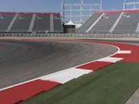 Curve on a Racetrack with Empty Seats in Front of a Stadium