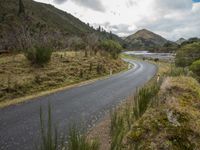 Curvy Asphalt Road Through Highlands with Mountain Views