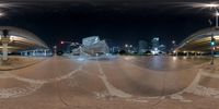 A 360-view of a bustling Dallas city street at night. The modern architecture and high-rise buildings create a stunning cityscape against the clear night sky. The street is illuminated by streetlights, giving the scene a beautiful glow.