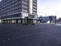 Dawn breaks over Alexanderplatz, Berlin's iconic tourist attraction. Cobblestone streets weave through a mix of modern and historic architecture. The bustling business district features office buildings and open spaces, connected by a network of roads, railways, and trams in this vibrant metropolitan area.
