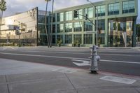 A cityscape view of downtown Los Angeles at dawn. Modern architecture and office buildings line the streets. Pedestrians cross the urban design with a backdrop of clear skies. The hustle and bustle of city life in the business district.