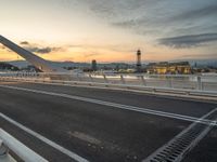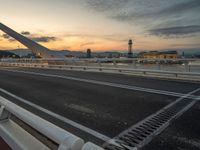A breathtaking view of Barcelona's coastal cityscape at dawn. The modern architecture of the city is showcased in the urban design, with a bridge connecting the coastal skyline. Spain's vibrant city life comes to life against the backdrop of the ocean.
