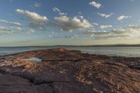This image captures the serene beauty of a coastal landscape. The first light of dawn illuminates the open space and highland, casting a warm glow over the water and rocks. The atmosphere is crisp and clear, with fluffy clouds dotting the azure sky. The rugged coastline offers opportunities for recreational activities and provides a connection to nature. Whether you're seeking a peaceful retreat or an adventurous getaway, this coastal scene is sure to inspire and rejuvenate.