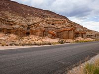 A stunning sunrise in California, casting a warm glow on the desert landscape. The asphalt road winds through the rugged mountains, offering a breathtaking view of the natural highland terrain.