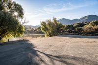 This stock photo captures the beauty of a sunny day in Ojai, California, USA. The image features an empty parking lot with mountains and trees in the background. The clear sky and sunshine create a vibrant and inviting atmosphere. The open space and rural landscape evoke a sense of nature and tranquility. This photo represents a perfect destination for outdoor enthusiasts and nature lovers. Whether you're looking for a scenic drive or a peaceful hike, Ojai offers a stunning backdrop of mountains and open spaces.
