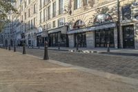 This image showcases a charming street in Paris, France at dawn. The classic architecture of the city is prominent, with its low buildings and facades lining the road and creating a picturesque urban scene. The cobblestone road surface and the quaint cafes and restaurants add to the charm of this mix-use neighborhood. The public spaces, such as the plaza and the curbside seating, provide opportunities for people to enjoy city life and dine out. This photo captures the essence of Paris, highlighting its beautiful architecture, vibrant streets, and bustling urban atmosphere.