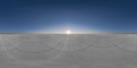 A stunning landscape captured at dawn, with the sun visible in a clear sky over an open space. The concrete surface adds a unique touch to the nature scene. A perfect depiction of the break of day in Europe and Asia.