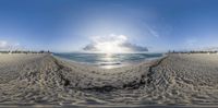 this is the photo of a panoramic view of the beach and ocean from a 360 - angle camera