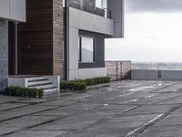 A stunning view of modern architecture in Los Angeles, California, USA at dawn. This beautiful building features a sleek design with a combination of glass, concrete, and siding. The reflection of the building on the wet road surface adds to its beauty. The interior design showcases an open space with floor-to-ceiling windows, allowing for a breathtaking view of the surrounding residential area. The villa overlooks the city, offering a magnificent overview of the urban design. The tree-lined facade adds a touch of nature to the concrete structure, creating a harmonious blend of modernity and natural elements. This stock photo is perfect for showcasing architecture, interior design, and urban development projects.