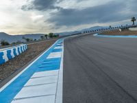 A race track at dawn in the USA. The asphalt curves glisten under the early morning light. Clouds overhead add drama to the race. Get ready for an adrenaline-filled day of racing.