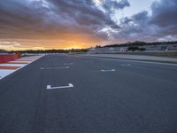 This is an image taken at dawn in Valencia, Spain. The photo shows a straight road stretching towards the horizon, with asphalt road surface and lane markings. The dramatic clouds in the sky add to the overall atmosphere of the scene. The location is reminiscent of a race track, with the mountain in the background adding to the sense of drama. Contrails from passing airplanes create interesting lines in the sky. This photo captures the beauty and drama of the European landscape, showcasing the infrastructure and natural elements in one frame.
