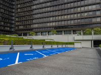 A modern urban landscape in Hamburg, Germany. Daytime city life with electric charging stations and business districts. Sleek office buildings contrast with the urban architecture of parking garages and road infrastructure.