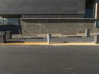 This is an image of a modern office building in the business district of Santa Monica, California. The clear sky provides a backdrop for the sleek design and architecture of the building. In front of the building, there is a parking lot with lines and asphalt road surfaces indicating the urban nature of the location. This photo represents the urban design and city life of Santa Monica, a bustling city in California. The building stands tall and represents the business and commercial aspects of the area.