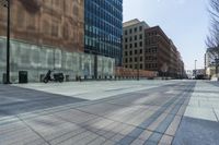 A view of downtown Denver, Colorado, showcasing its modern architecture and high-rise office buildings. The cityscape reflects on the clear surface of a plaza in the business district. The low open space offers a peaceful escape in the heart of the metropolitan area.