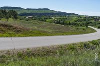 This is an image of a road in Deer Creek Canyon Park, Colorado. The road stretches through the lush green landscape, surrounded by hills and elevated terrain. The clear sky above provides a beautiful backdrop to the natural beauty of the area. This photo captures the high and elevated nature of Deer Creek Canyon Park, showcasing the scenic views and the peacefulness of the surroundings. The road, made of asphalt, invites visitors to explore and enjoy the picturesque scenery. Experience the tranquility and serenity of this stunning location in Colorado.