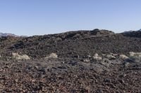 This stunning stock photo showcases the beautiful California desert landscape. The image features an expansive open space with mountains in the background. The day is clear with a clear sky, allowing for a breathtaking view of the natural environment. The rugged terrain, including dirt, gravel, and rock surfaces, adds to the charm of this wilderness. The image also captures a tree and hill in the foreground, adding a touch of greenery to the otherwise dry desert. The mountain landforms and bedrock outcrops further illustrate the unique geology of this area. It's an ideal location for off-road adventures and exploring the vast desert landscape. This photo is perfect for anyone in need of a captivating shot of a California desert, whether for personal or commercial use.