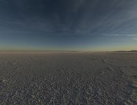 This awe-inspiring image captures the calm and emotional beauty of the Utah desert at dawn. The barren plain stretches as far as the eye can see, with hills on either side of the horizon. The sun is rising, casting a warm glow over the sand and mountains. In the distance, the surface of the salt lake glistens under the clear sky. The atmosphere is serene, providing a glimpse into the untouched natural environment. This photo transports you to the vast and captivating landscapes of Utah.
