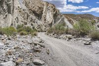 Scenic desert landscape in Tabernas, Spain. Clear skies highlight the rugged mountain formations and sandy surfaces. Off-road tracks and gravel thoroughfares wind through the valley, surrounded by sparse vegetation and tree outcrops. A picturesque day in Europe's only desert.