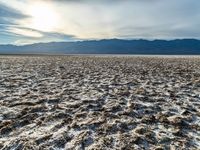 an empty landscape with lots of dirt in the foreground, and mountains on the right