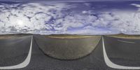 An empty highway cuts through the desert range in Fuerteventura, Spain. The road stretches straight ahead, disappearing into the horizon. The rugged landscape is dominated by sandy dunes and low hills. Clear skies and calm atmosphere create a serene vacation vibe.