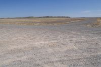 A stunning landscape in Utah's desert, featuring red rock formations, grassy plains, and a clear sky. The dirt road cuts through the rugged terrain, leading to the horizon. Explore the beauty of Canyonlands and the San Rafael Swell.
