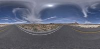 Endless road in the desert of Utah, surrounded by stunning mountain landscapes. Clear blue skies with fluffy cumulus clouds. A straight road leading to the San Rafael Swell and Goblin Valley. A perfect day for a road trip in the USA.