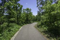 This stock photo showcases a deserted asphalt road in Ontario, Canada. The road is surrounded by tall trees, creating a lush and green landscape. A clear sky adds to the natural beauty of this serene location. The tree-filled plant community and vegetation create a picturesque scene. The straight road surface leads straight ahead, providing a sense of adventure and exploration. The image captures the essence of nature and tranquility.