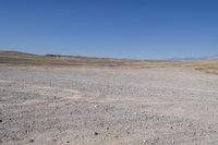 This is a photo of a stop sign placed in the middle of a barren field surrounded by mountains and arid areas in Utah, USA. The landscape features red rock formations, a characteristic of the desert terrain. The road surface is made of dirt and gravel, suitable for off-road tracks and adventurous exploration. The clear sky and vast horizon enhance the sense of remoteness and tranquility. The location is near Canyonlands and San Rafael Swell, showcasing the beautiful Aeolian landforms and plateaus. The 4 Corners Mine Road offers a unique opportunity to experience the rugged beauty of Utah's nature.