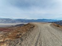 a dirt road with mountain in the background and mountains in the distance under cloudy skies
