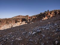 This image captures a rugged landscape in Yunnan, China that resembles the surface of Mars. The dirt road winds through the mountainous terrain, surrounded by wild nature and bedrock outcrops. The clear sky above contrasts with the clouds, adding to the dramatic scenery. This off-road track showcases the unique geology of the area, with gravel and soil formations creating a picturesque setting. Shangri-La, located in Yunnan, is known for its badlands-like formations and untouched wilderness. This photo captures the untouched beauty of the region, making it a perfect representation of the natural wonders of Yunnan.