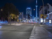 This image showcases the modern architecture and city life of Berlin, Germany. The photograph captures a view of the city at night, with the downtown area illuminated by street lights and artificial light. The roads and asphalt reflect the metropolitan and urban design of Berlin. This vibrant and bustling metropolis is the heart of Germany, with its unique blend of historical buildings and contemporary architecture. The photo represents the energy and atmosphere of the city, showcasing the beauty of Europe's urban landscape.
