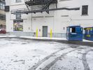 Winter scene in downtown Detroit. Tall buildings line the snow-covered street, with cars and buses parked along the curb. A glimpse of the city's art district can be seen in the background.