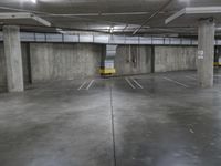 Aerial view of a concrete road in downtown Los Angeles, California. The city's architecture is showcased by the straight perspective. The open parking lot and parking deck provide ample space. Artificial light illuminates the concrete surfaces.