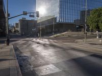 This is an image of a sunny day in downtown Los Angeles, California. The clear sky showcases the classic architecture of the city, with lanes of asphalt roads leading through the urban landscape. The sun is visible, casting a warm light on the metropolitan area. This photo captures the essence of city life in Los Angeles, with its vibrant urban design and bustling streets. It is a representation of the sunshine and energy that this iconic city is known for.