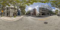 A wide-angle view of downtown Miami, Florida. The modern architecture and futuristic design of the buildings create a vibrant urban landscape. The open spaces and art district add to the city's unique charm.