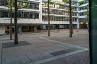 A spacious plaza in downtown Stuttgart, Germany. Urban design features restaurant and storefront facades. Empty area with buildings on either side offers an ideal spot for outdoor dining and shopping.