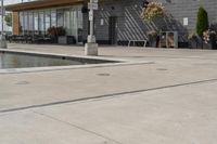 A modern office building in the business district of downtown Toronto. The cityscape features a mix of concrete and glass architecture. Pedestrians walk on the tiled walkways, while cars drive along the busy roads.
