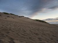 A dramatic California coastal landscape at dawn. The highland road leads to an open space with wild terrain and elevated sand dunes. The ocean waves add a touch of drama to the natural environment.