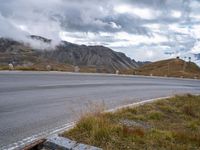 This is a scenic landscape photo taken in the highlands of Austria, Europe. The image captures a curved asphalt road surrounded by lush green grass and trees. The dramatic clouds in the sky add a sense of drama to the scene. The road surface is well-maintained, providing a smooth thoroughfare for travelers. The vegetation along the roadbank enhances the natural beauty of the area. This picture showcases the stunning beauty of the Austrian countryside and represents a typical day in rural Austria.