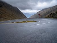 This is an image of a gloomy and dramatic landscape in Europe. The grey sky hangs over the highlands, with mountains in the distance. A wet road surface winds through the scene, curving and switching back on itself. The asphalt road reflects the gloomy skies and adds to the overall dramatic atmosphere. In the foreground, there is a lake, providing a serene contrast to the moody surroundings. This photo captures the essence of the Timmelsjoch pass in Austria, showcasing the beauty and intrigue of the European landscape.
