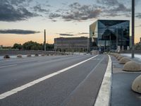 This image showcases the cityscape of Berlin, Germany during dawn. The modern architecture of the office buildings, lined with tree-lined streets, creates a dramatic and awe-inspiring scene. The clear sky above adds to the picturesque view. The asphalt roads and tar-covered thoroughfares reflect the urban infrastructure of the city. Street lights illuminate the scene, creating a sense of city life. The image captures the essence of Berlin's business district, symbolizing the bustling financial and business activities that take place in the city. This photo represents the urban design and European charm of Berlin during the break of day.