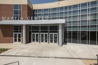 The Martin Center in East Tennessee is an impressive example of modern architecture. With its sleek facade and large windowed windows, it stands tall in the city's business district. The composite material and brickwork create a striking urban design. A bench outside invites city life to take a moment and enjoy the clear sky.