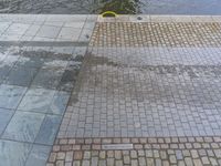 An elevated aerial view of the city of Berlin, Germany. Cobble stone streets and modern architecture form the urban design. The river and canals reflect the cloudy sky, adding to the city's unique charm.