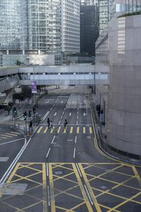 This stock photo features an elevated city road in Hong Kong. The street and traffic are on both sides, with no traffic passing by. The architecture and buildings line the road, creating a metropolitan area. The infrastructure and road surface are made of asphalt, designed for high urban traffic. The view is straight down the road, showcasing the urban design and thoroughfare of this bustling metropolis in Asia.