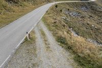 This is an aerial view of a high, curved road in Italy. The rugged landscape shows a mix of grass, vegetation, and groundcover. The road surface is made of asphalt and gravel, providing a sturdy and elevated entry to the area. The surrounding scenery is a beautiful mix of nature, with slopes and bedrock adding to the uniqueness of the terrain. This photo captures the essence of off-road tracks in Europe, showcasing the natural beauty and diverse landscape of Italy.
