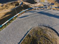 Picturesque landscape of an elevated road in Austria. The clear sky adds to the scenic beauty of this high mountain road. The switchbacks and S-curves make for an exciting bike ride through nature.