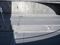 This image captures the modern architecture of Berlin, Germany. The cityscape features high-rise buildings and a wide road with asphalt and concrete surfaces. The lines and shadows created by the urban design add depth to the composition. The elevated road gives a unique perspective of the city and showcases the urban lifestyle of Berlin. This photo represents the vibrant city life and architectural beauty of the European capital.