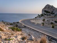 This image captures the breathtaking beauty of Mallorca, Spain. The curvy road, elevated high above the rugged coastline, offers a mesmerizing view of the Balearic Islands and the endless expanse of the ocean. The clear sky provides a perfect backdrop for the landscape, making it an ideal spot to witness the dawn and break of day. The asphalt road winds through the untouched nature, showcasing the harmony between man-made infrastructure and the untouched beauty of Europe. This picture embodies the tranquility and serenity that Mallorca has to offer.