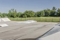 An elevated view of a road in Toronto, Canada. Clear skies provide the perfect backdrop for recreational activities. The smooth asphalt surface is ideal for skating. The road is surrounded by open spaces and a high stadium.
